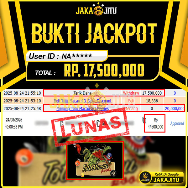 JAKAJITU JACKPOT TOTOMACAU 5D Rp. 17.500.000,- LUNAS