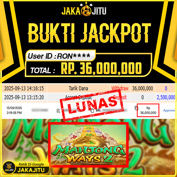 JAKAJITU JACKPOT MAHJONG WAYS 2 Rp. 36.000.000,- LUNAS