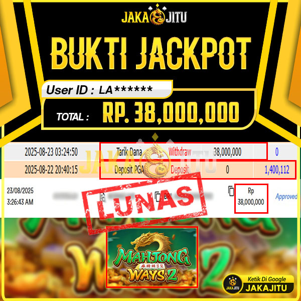 JAKAJITU JACKPOT MAHJONG WAYS 2 Rp. 38.000.000,- LUNAS