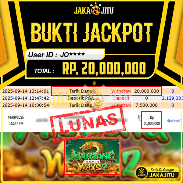 JAKAJITU JACKPOT MAHJONG WAYS 2 Rp. 20.000.000,- LUNAS