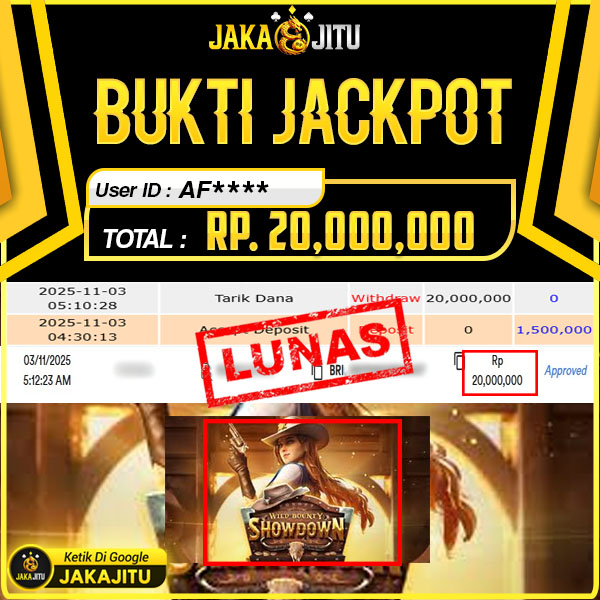 JAKAJITU JACKPOT WILD BOUNTY SHOWDOWN Rp. 20.000.000,- LUNAS
