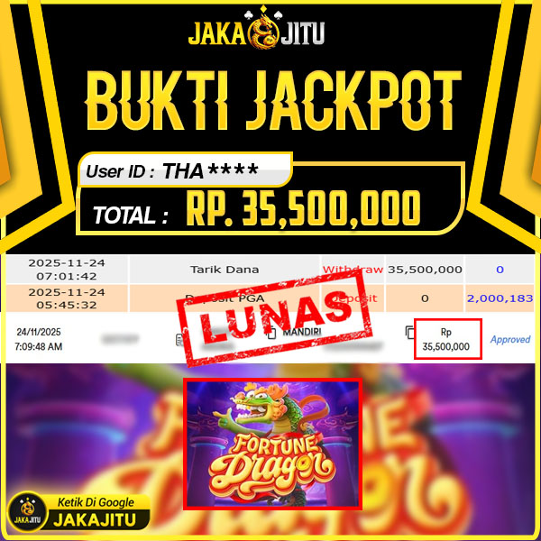 JAKAJITU JACKPOT FORTUNE DRAGON Rp. 35.500.000,- LUNAS