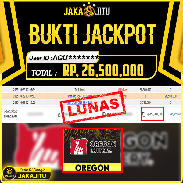 JAKAJITU JACKPOT OREGON LOTTERY Rp. 26.500.000,- LUNAS