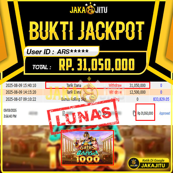 JAKAJITU JACKPOT GATES GATOTKACA 1000 Rp. 31.050.000,- LUNAS