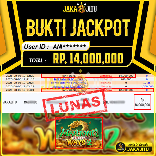 JAKAJITU JACKPOT MAHJONG WAYS 2 Rp. 14.000.000,- LUNAS