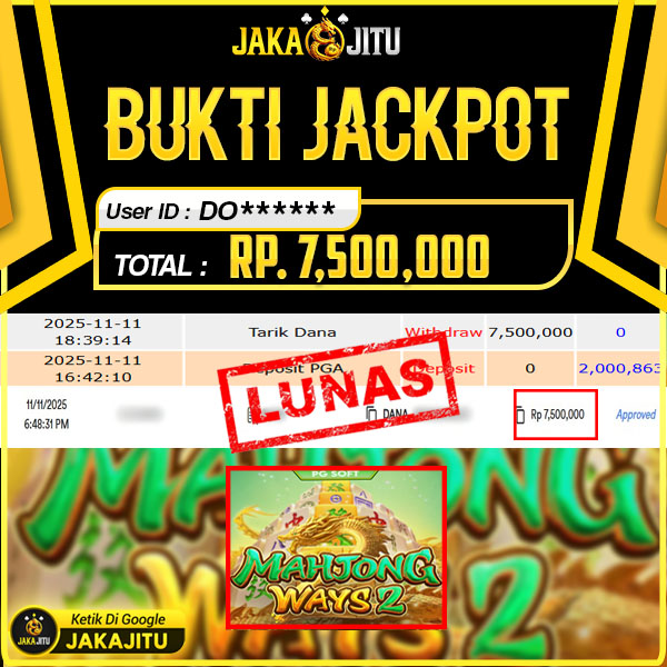 JAKAJITU JACKPOT MAHJONG WAYS 2 Rp. 7.500.000,- LUNAS