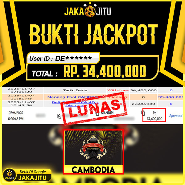 JAKAJITU JACKPOT CAMBODIA POOLS Rp. 34.400.000,- LUNAS