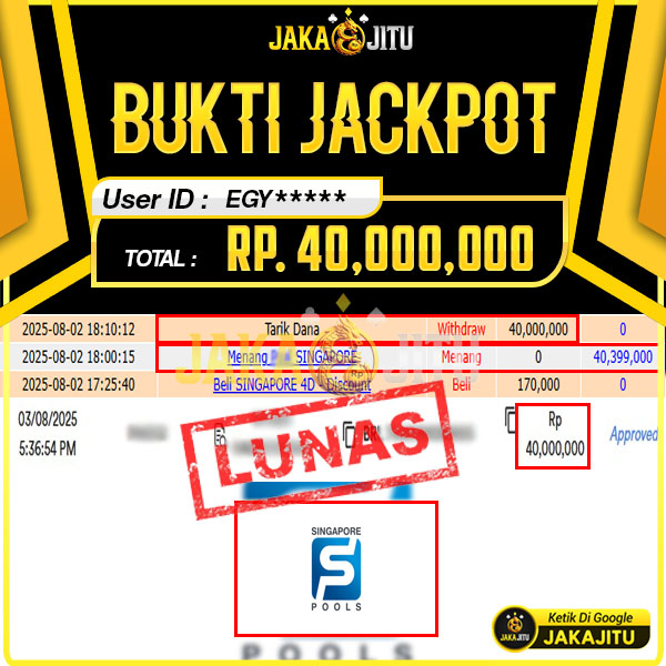 JAKAJITU JACKPOT SINGAPORE POOLS Rp. 40.000.000,- LUNAS