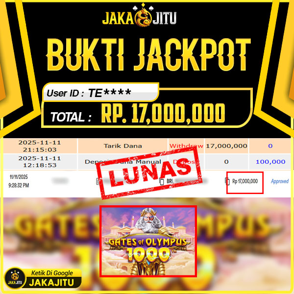 JAKAJITU JACKPOT GATE OF OLYMPUS 1000 Rp. 17.000.000,- LUNAS