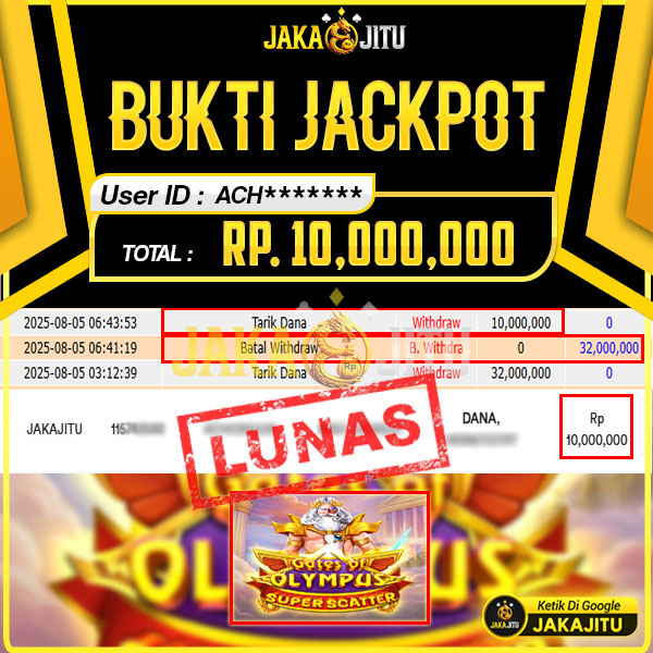 JAKAJITU JACKPOT GATE OF OLYMPUS SUPER SCATTER Rp. 10.000.000,- LUNAS