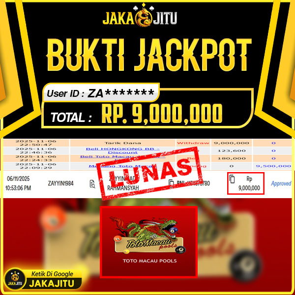 JAKAJITU JACKPOT TOTOMACAU 4D Rp. 9.000.000,- LUNAS