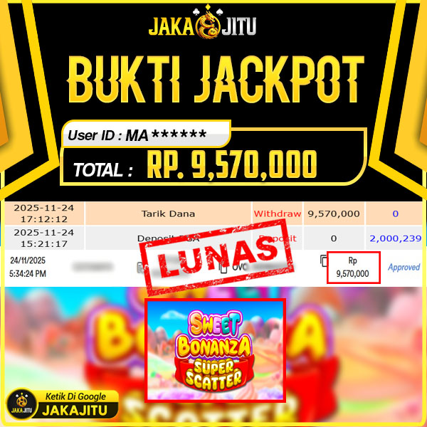 JAKAJITU JACKPOT SWEET BONANZA SUPER SCATTER Rp. 9.570.000,- LUNAS