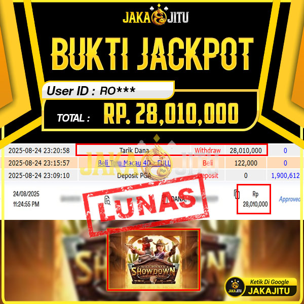 JAKAJITU JACKPOT WILD BOUNTY SHOWDOWN Rp. 28.010.000,- LUNAS