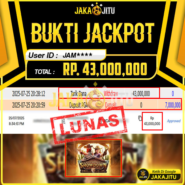 JAKAJITU JACKPOT WILD BOUNTY SHOWDOWN Rp. 43.000.000,- LUNAS