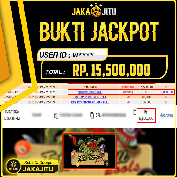 JAKAJITU JACKPOT TOTOMACAU 4D Rp. 15.500.000,- LUNAS