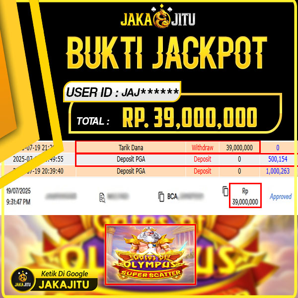 JAKAJITU JACKPOT GATE OF OLYMPUS SUPER SCATTER Rp. 39.000.000,- LUNAS