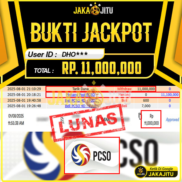 JAKAJITU JACKPOT PCSO Rp. 11.000.000,- LUNAS