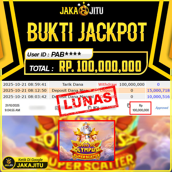 JAKAJITU JACKPOT GATE OF OLYMPUS SUPER SCATTER Rp. 100.000.000,- LUNAS