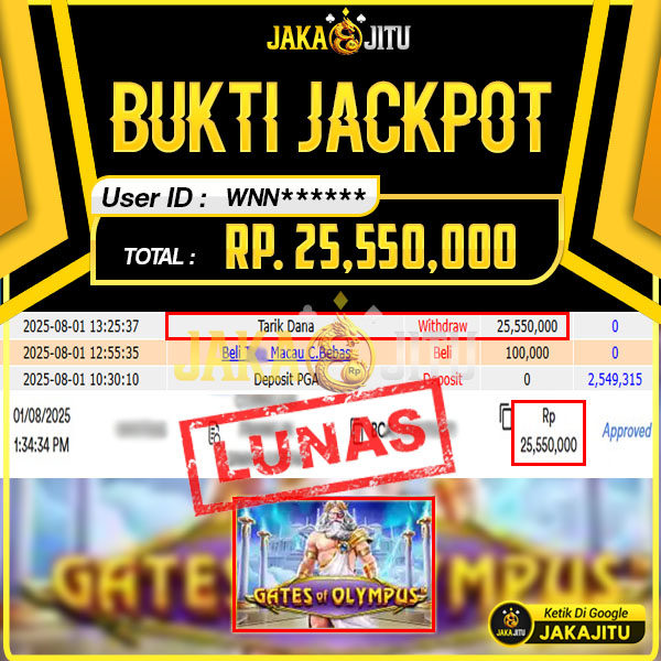 JAKAJITU JACKPOT GATE OF OLYMPUS Rp. 25.550.000,- LUNAS