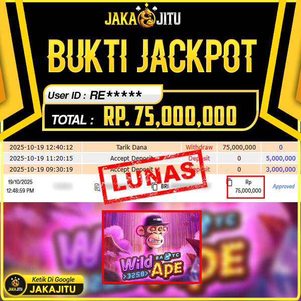 JAKAJITU JACKPOT WILD APE Rp. 75.000.000,- LUNAS