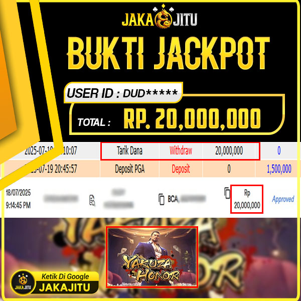 JAKAJITU JACKPOT YAKUZA HONOR Rp. 20.000.000,- LUNAS